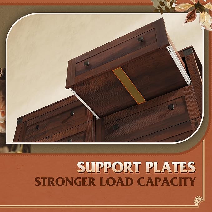- đăStructure Stable and SmoothăThe dresser drawer features a middle support plate for stability and load capacity, smooth metal slides for easy pulling, which allows drawers to open fully without tipping for better storage.
