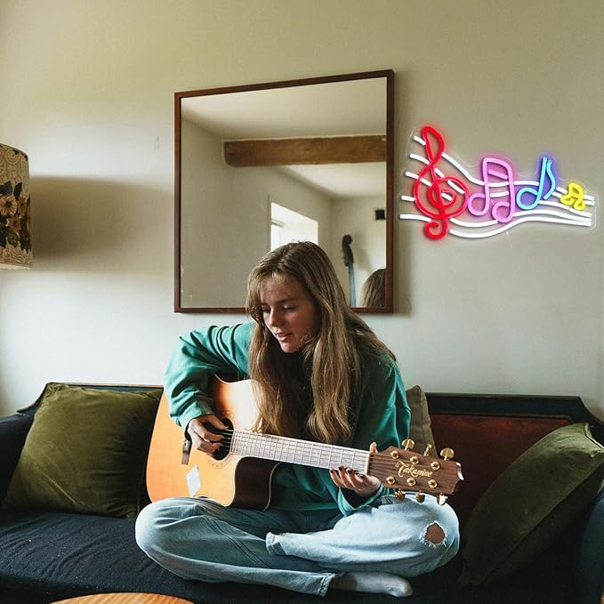 - Easy to install: The note neon light signs comes with two hooks, two pre drilled holes, and a chain for easy hanging on walls or anywhere else. There is a protective film on the back that needs to be removed to prevent scratching the led neon sign