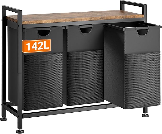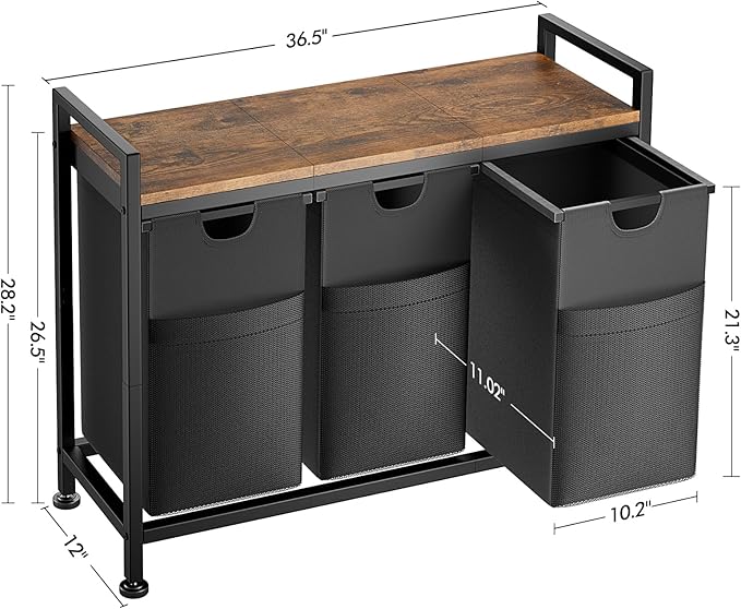 - Pull-out & Removable Design: 3 collapsible laundry sections is designed for easy pull-out of the clothes hamper, then you can remove the laundry bags to the laundry room. Feature a bottom board to offer extra support -No Sag When Laundry Bags Full.