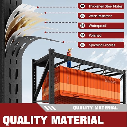 - 【HEAVY DUTY FOR REAL】Our super heavy-duty garage shelving featuring one-piece columns that are seamlessly constructed without any joints. This design eliminates weak points and ensures maximum stability, even under the heaviest loads. Each column is wider and thicker than standard models, providing a solid foundation that can handle up to 3000 lbs in total weight. Whether you’re storing heavy machinery, large containers, you can trust our garage shelving to keep your items safe and secure.