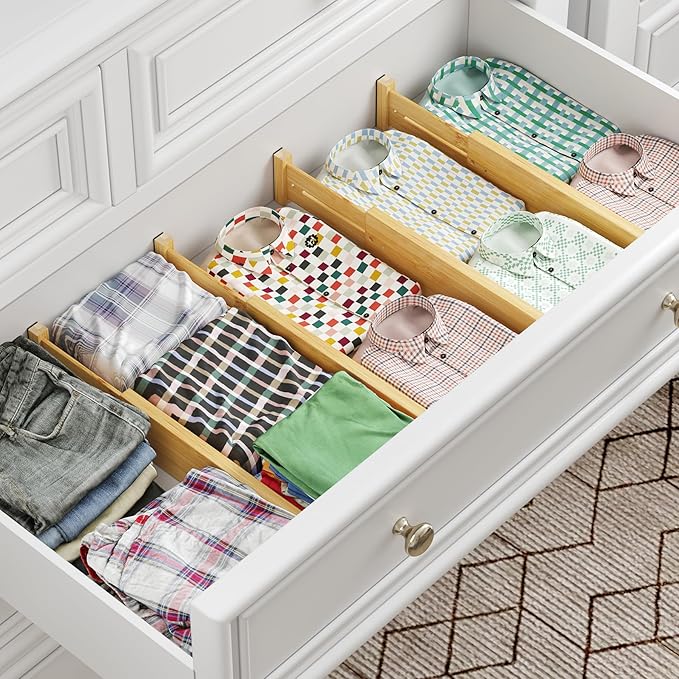 - Premium Bamboo Material: These bamboo drawer dividers are made of high quality bamboo material, natural color, tough texture, smooth surface, well made and long-lasting; Simply wipe it with a damp cloth