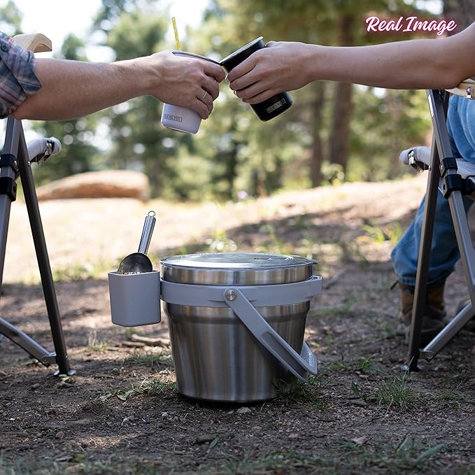 - ALL-IN-ONE SET: Includes a large ice bucket, leak-proof lid, ice bucket scoop, and two bar attachments - making it an ice bucket with lid and scoop and the ultimate all-in-one ice bucket for parties or outdoor gatherings.