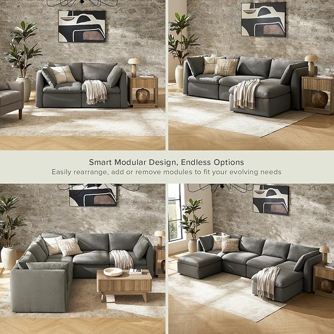 - Modular & Customizable for Every Moment: Whether life calls for intimate conversations or a full house, the modular sectional sofa adapts. Rearrange or expand your layout with ease, making it the perfect companion to grow and change with your needs. Whether you want a cozy L-shaped couch, an expansive U-shaped setup, or a laid-back pit-sectional, the choice is yours