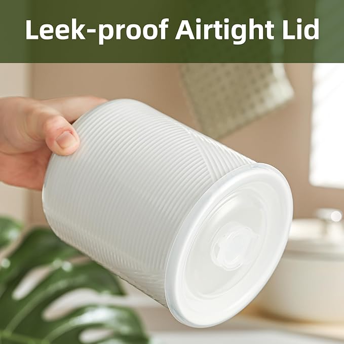 - 【Easy to Use 】Features PP airtight lids with silicone sealing rings that won't deform with long-term use and open/close effortlessly. Classic striped texture provides anti-slip functionality. Both jars and lids are dishwasher safe