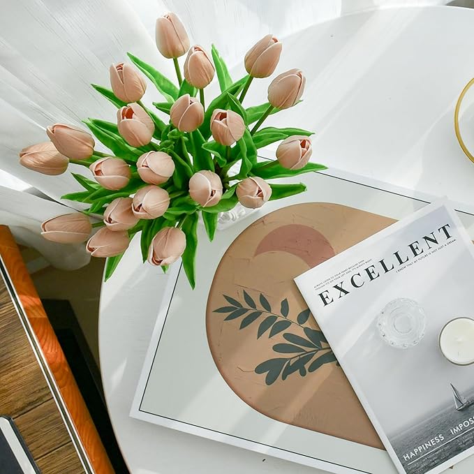 - Elegant & Realistic Centerpiece Flowers.Crafted to elevate any table setting, these artificial tulips feature soft-touch PU petals and natural curves that deliver graceful realism—perfect for weddings, dining centerpieces, or home styling.