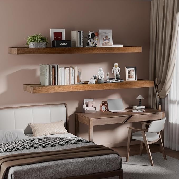 - γπ½ππππππππ πΌππγWith an even coating on all surfaces,Our walnut floating shelves are versatile use, making them ideal for bathrooms,kitchens,bedroom.The generous 6.7" width accommodates a variety of items,from bathroom essentials to books and decorative pieces.