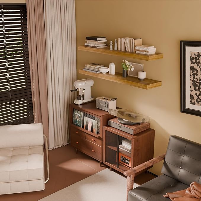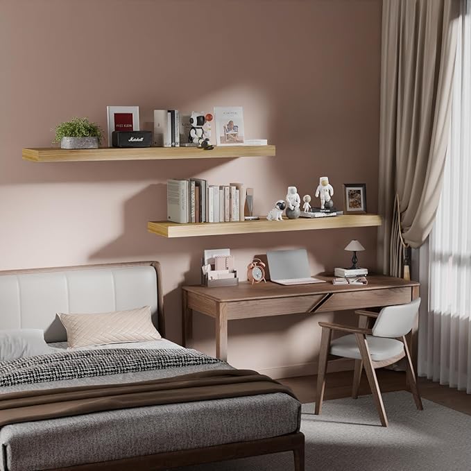 - γπ½ππππππππ πΌππγWith an even coating on all surfaces,Our floating shelves are versatile use, making them ideal for bathrooms,kitchens,bedroom.The generous 6.7" width accommodates a variety of items,from bathroom essentials to books and decorative pieces.