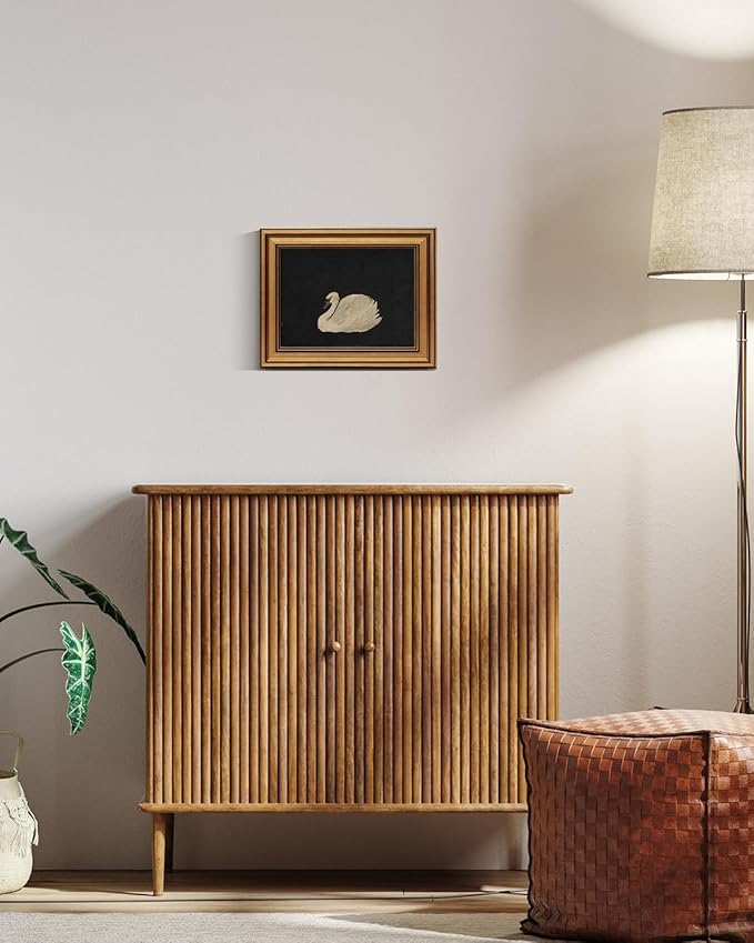 HUARCEY Gold Framed Vintage Wall Art for Living Room, Grace Swan Art Painting Pictures Rustic Animal Bathroom Prints Farmhouse Wall Decor Mother's Day Gifts for Mom Canvas Swan Shelf Decor for Bedroom