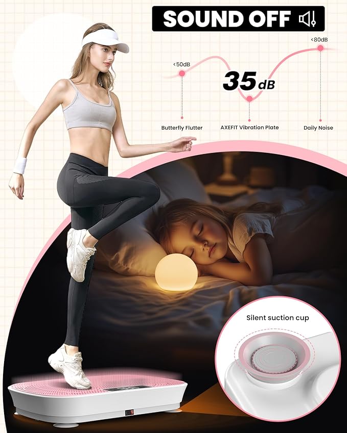 - 【2-in-1 Control & Low Noise】AXEFIT vibration plate exercise machine can be controlled through a remote controller or LED screen buttons, offering 5 preset program modes for easy selection of suitable exercise modes. Its low-noise design provides users with an excellent user experience, featuring dual noise reduction through built-in professional shock absorbers and sound-absorbing chassis material, effectively reducing vibration transmission and noise interference.