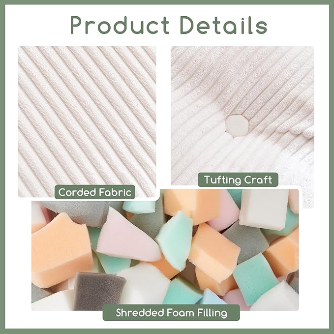 - HIGOGOGO bean bags are made from ultra-soft and durable corduroy, a fabric that resists wear and tear, ensuring your bean bag chair will remain comfortable and cozy for years to come