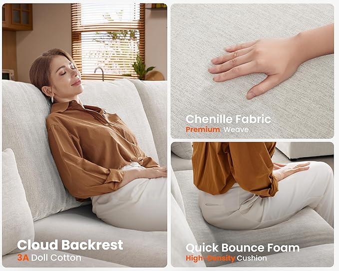 - 【Durable and Long-Lasting Construction】Say goodbye to flimsy furniture—CHIC HOUSE’s sectional is built to last with a strong hardwood frame and high-density foam cushions that provide both support and comfort. Perfect for families, pet owners, and anyone who needs that handle daily wear and tear, this modular withstands constant use while retaining its shape. Enjoy peace of mind knowing your sofa will stay sturdy, supportive, and comfort, whether you’re lounging, working, or entertaining guests