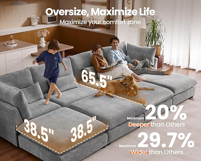 - 【Tool-Free Assembly in Minutes】Assemble your sofa in no time—no tools required! The modular design allows for quick and easy setup using high-quality U-shaped stainless steel connectors, ensuring a secure fit between each module. Reconfigure your sectional effortlessly and enjoy it in as little as 20 minutes. Perfect for those who value convenience and flexibility, this sectional offers a seamless assembly experience and provides total comfort from the moment it arrives