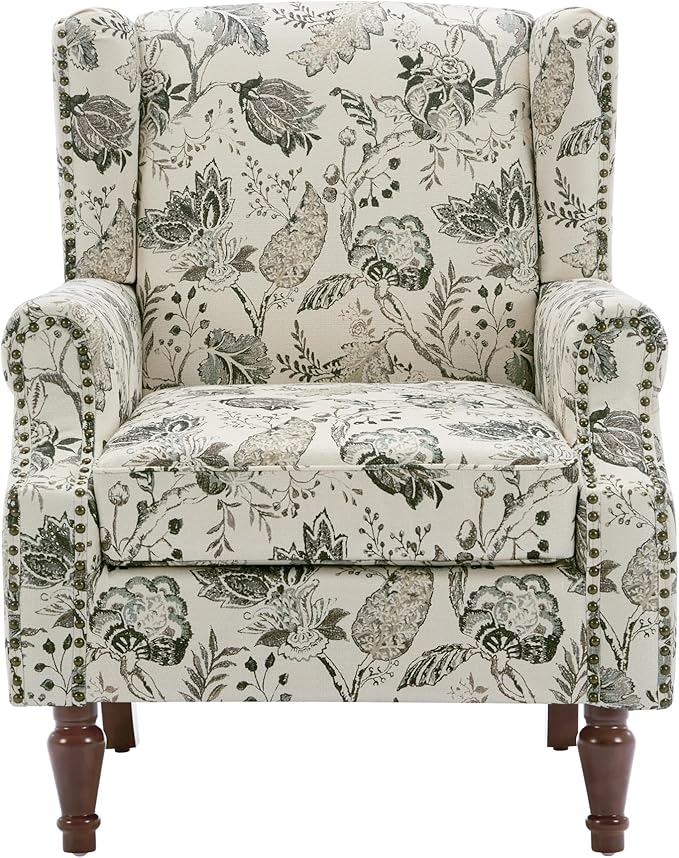 - Attractive Printed Pattern Chair - This armchair features nailhead trim, rolled armrests, vintage wooden legs and a beautiful patterned design for a traditional and chic look. Ideal for waiting room, living room, bedroom, dressing room, dressing room, office, reception room.
