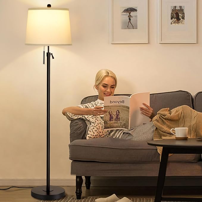 - Adjustable Height Modern Floor Lamp: This tall standing lamp can be adjusted between 55-65" to adapt to the best lighting in any situation, meeting the needs of different age groups, such as children, adults and the elderly. With the most flexible adjustable height pole, this black floor lamps illuminate a larger area of ​​your space, whether at home or in the office, perfect for lighting in different scenarios