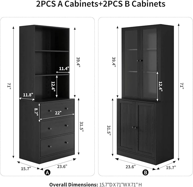 - DIY Your Cabinets: Customize your storage space with 3 drawers, 3 open shelves, 2 hidden shelves, and 3 shelves with glass doors. Perfect for bookcases, kitchen shelves, and display cabinets.