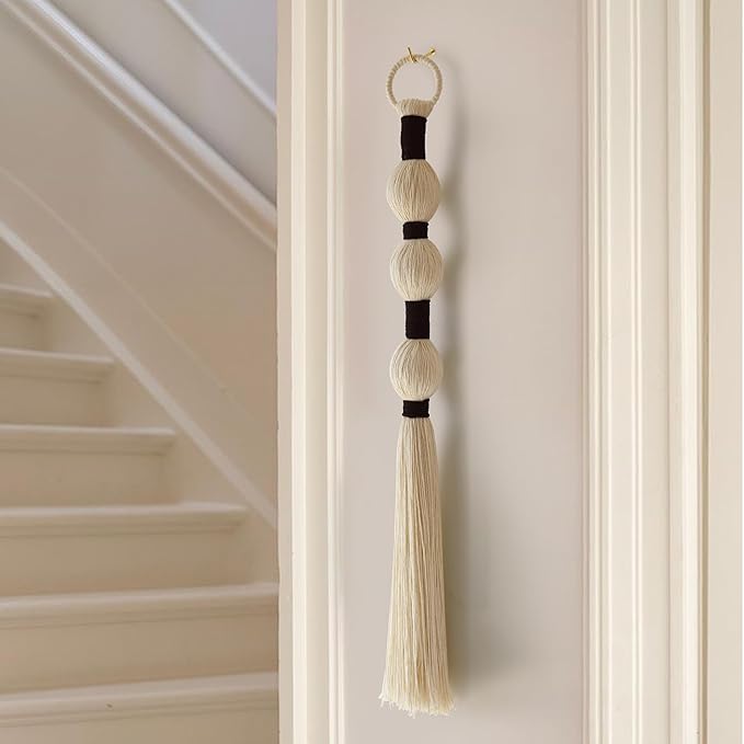 - Macrame wall decor sphericity cotton hand-tied black knot tassel wall decor combines traditional handcraftsmanship with modern design to create a distinctive home decor piece. Each piece of decorative art is meticulously crafted, showing exquisite craftsmanship and eclectic artistic style.