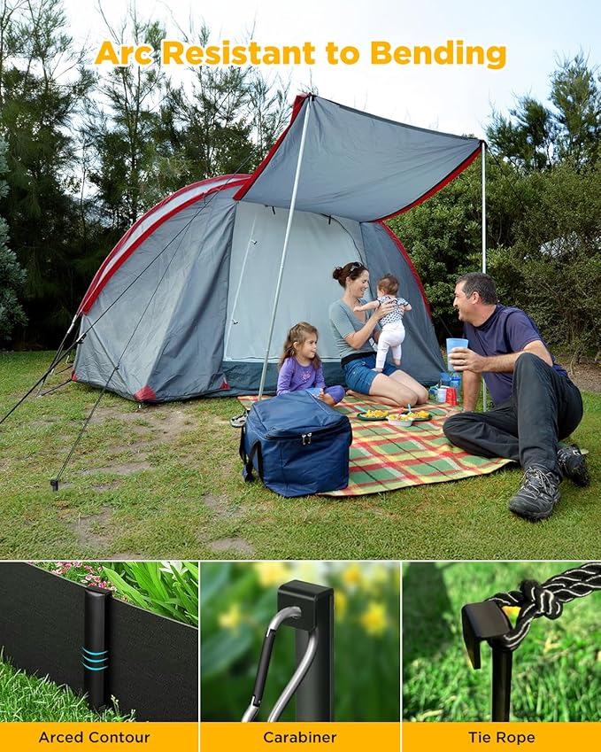 - Effortless Soil Penetration: The micro arc tip of our metal stakes for ground easily penetrates soil and gravel, reducing the risk of bending or hand injuries caused by plastic stakes, ensuring safe and effective use