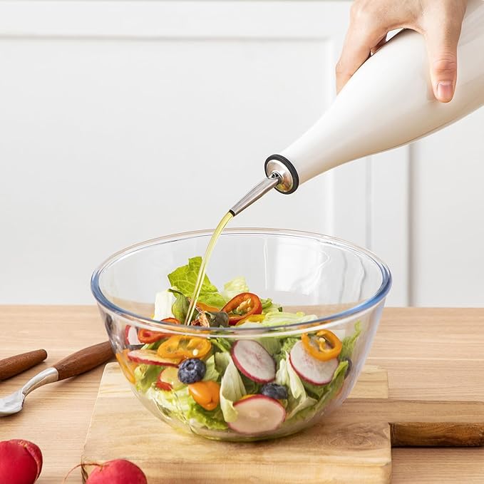 - 【Versatile and Multi-Use】Our ceramic oil dispenser is suitable for various oils, vinegar, and dressings, providing a versatile solution for all your culinary needs.