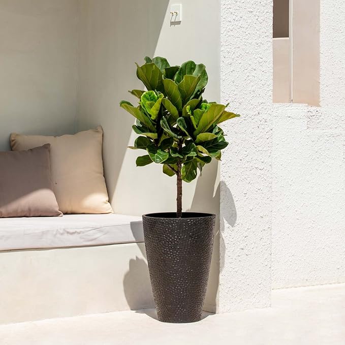 - LARGE TREE PLANTER - This spacious indoor set of 2 planters give you more creative freedom for your different gardening needs. You will love them showcasing large plants such as a snake plant, spider plant, monstera, philodendron, ficus, or other small trees in your front door entrance, living room, or office. Size:13.8”(D)x 20”(H). Soil Capacity: 7.7 gallon per planter. (Plants are not included)