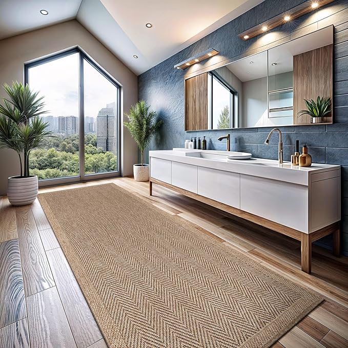 - [ EASY JUTE RUG ] Experience the enchantment of a resilient rug mimicking the appearance of natural jute, courtesy of our latest Easy-Jute rugs. (Jute-free in reality) Crafted from secure polypropylene, these rugs are resistant to cracking, ensuring they remain free from scratches, shedding, or unraveling over time.