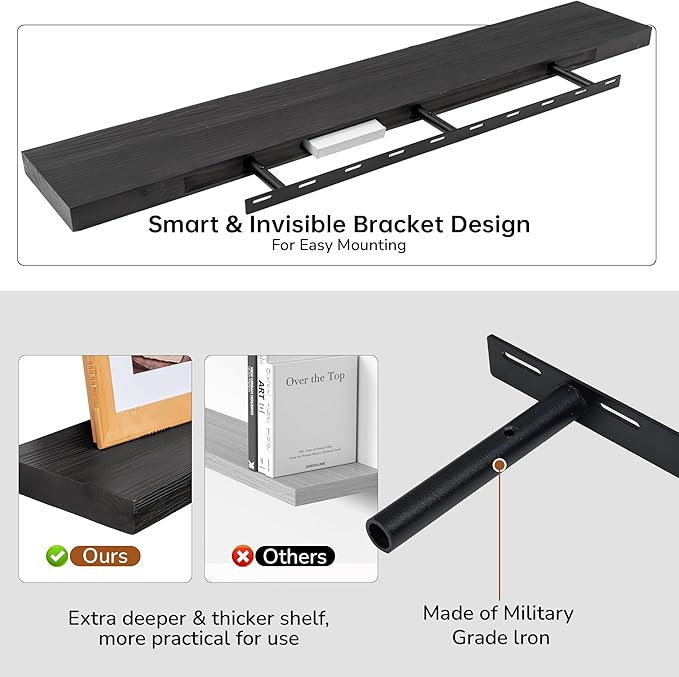 • Space-Saving Solution: Maximize storage without occupying floor space. Our floating wall shelves reduce clutter and enhance wall decor, perfect for compact spaces and any interior style.