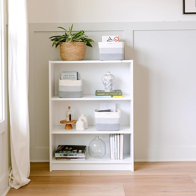 NaturalCozy Storage Cubes 9”x9”x7”Cotton Rope Woven Baskets for Organizing 3-Pack | 9 Inch Cube Storage Bin | Small Basket for Shelf Nursery, Pantry, Decorative Plant, Bathroom Closet, Toy Gift