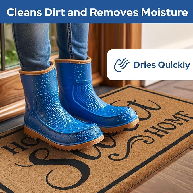 - Versatile - Our home sweet home doormat outdoor entrances is not only perfect for patios, but also makes a great welcome mat for outdoor events or camping trips. Its durable construction is perfect for cleaning dirt and debris from shoes, and the all-weather coir fibers dry quickly. Use it to welcome guests to your home, cabin, or RV.