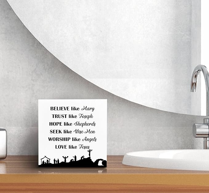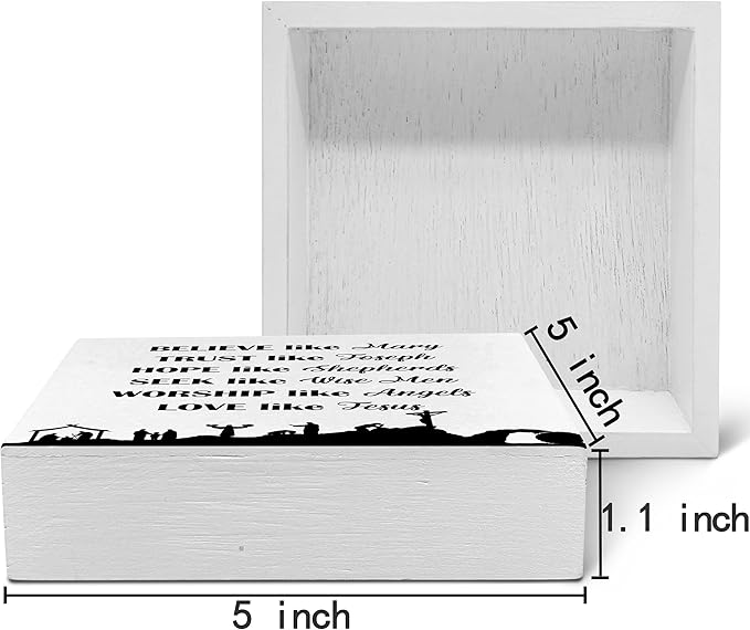 SRADMO Christian Signs for Home Decor, Inspirational Bible Verse Wood Box Sign Desk Decor, Bible Verse Decor, Christian Theme Wooden Block Box Sign Decoration for Home Office Shelf Table Decor