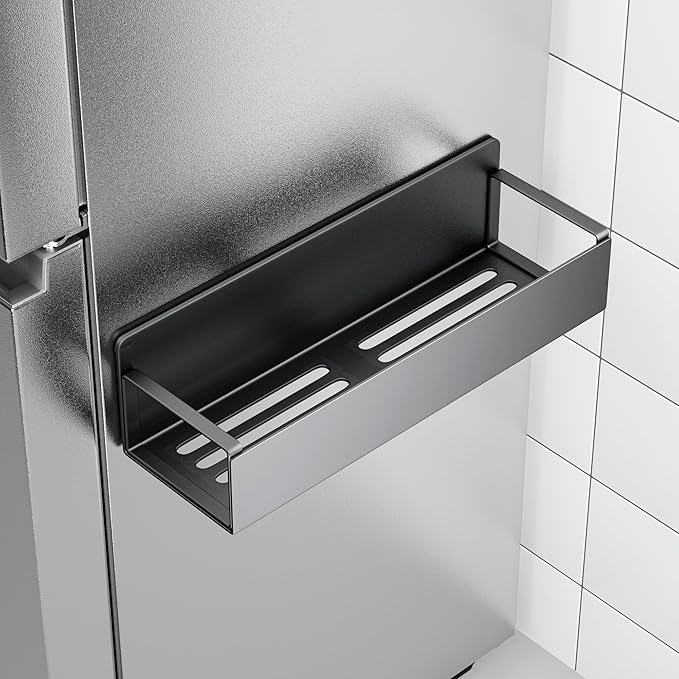 - THOUGHTFUL SAFETY DESIGN: The magnetic spice shelf features a raised 1.97-inch protective edge guard that effectively prevents items from falling off. The specially designed ventilated bottom ensures proper airflow and quick drying of containers.