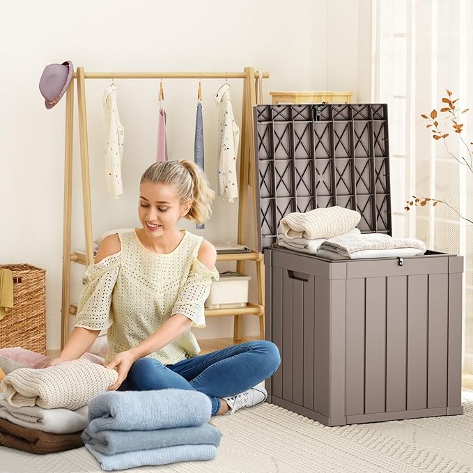 - FROM INDOORS TO OUTDOORS: This terrace deck box is not just for outdoor use; it can also function as an indoor laundry storage chest. Whether storing outdoor cushions, garden tools, pool accessories, or sports equipment, it offers plenty of room. Additionally, it serves as a versatile side table, patio seat, storage bench, or footstool