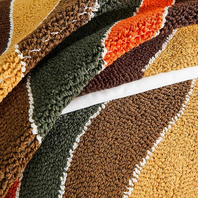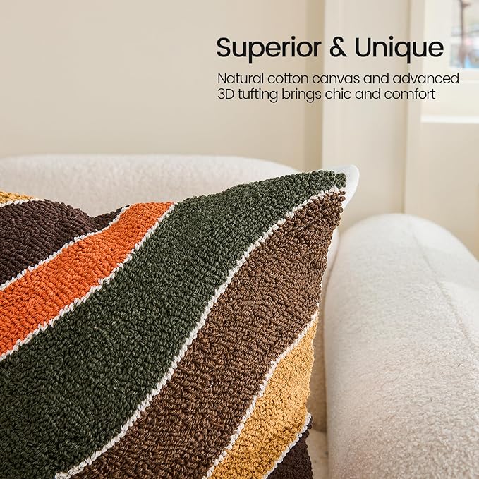 - ⭐【FABRIC AND SIZE】The front of this boho couch pillow cover is made of 100% polyester + 10% viscose,the backside is made of 100% cotton.Measures 18x18 inches.Exquisite workmanship enables tufting part dense soft and aesthetic.The 3D effect with the tufting technic makes these abstract pillow covers so distinctive