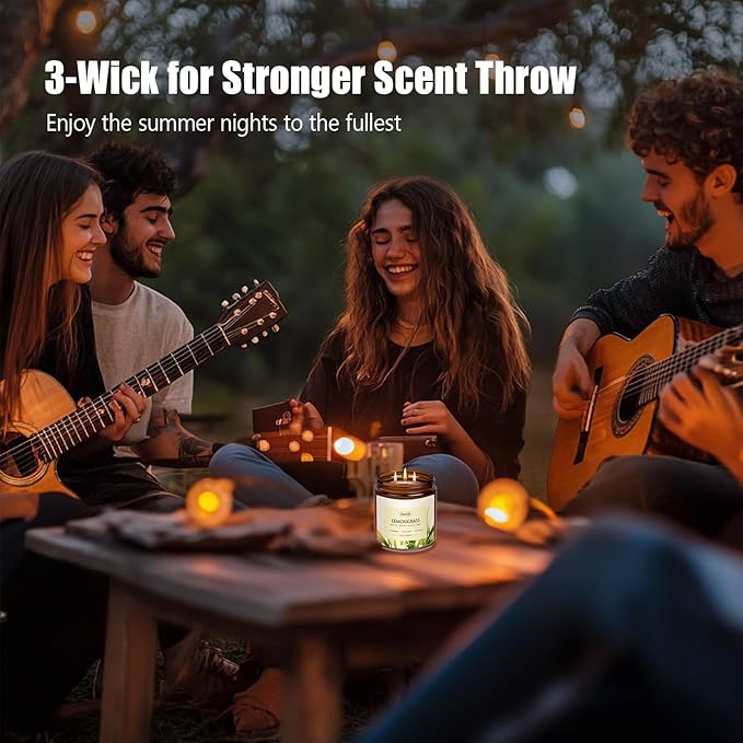 - 【3-Wick Scented Candles】 3 premium cotton wicks ensure an even burn, faster scent throw, and up to 50-60 hours of continuous fragrance, even burn that fills your space with invigorating fragrance—perfect for summer nights on the patio or adding a zen vibe to your living room.
