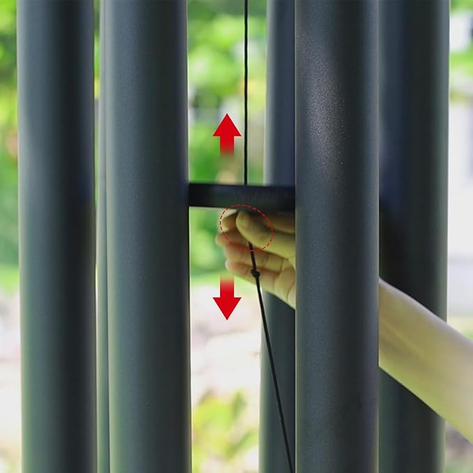 - Large Metal Wind Chimes- Tough synthetic cordage is highly resistant to abrasion. This wind chime made entirely of aluminum ,not only the six tubes,also the hook,the top part and the wind chimes pendulum,all durable anodized bronze finish.Thick tubing wall creates a longer lasting deep tone.Each tube is precision tuned to pentatonic scale.