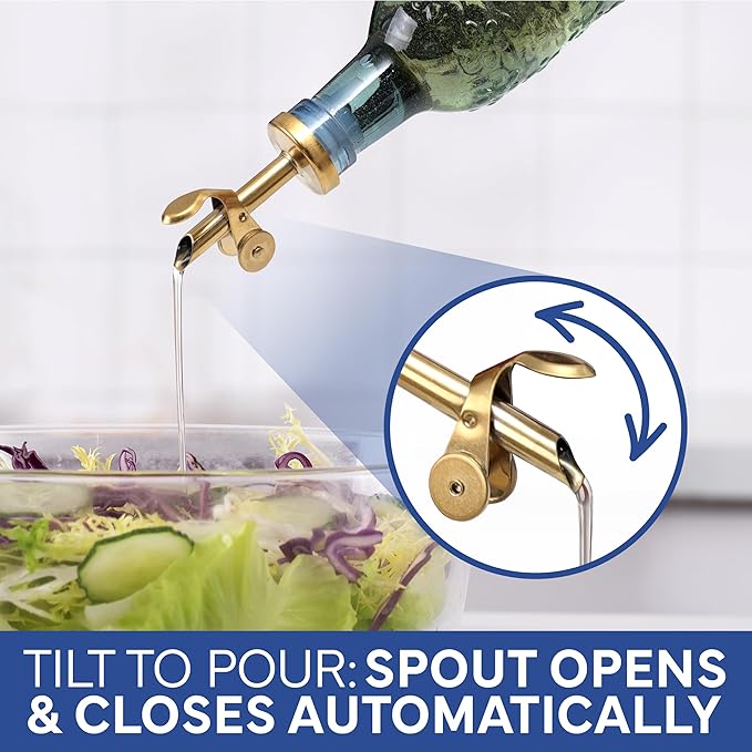 - Auto Flip Spouts - Drip free and mess free with our auto flip spounts. You'll get precise and smooth dispensions of your favorite oils and vinegars.