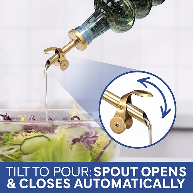 - Auto Flip Spouts - Drip free and mess free with our auto flip spounts. You'll get precise and smooth dispensions of your favorite oils and vinegars.