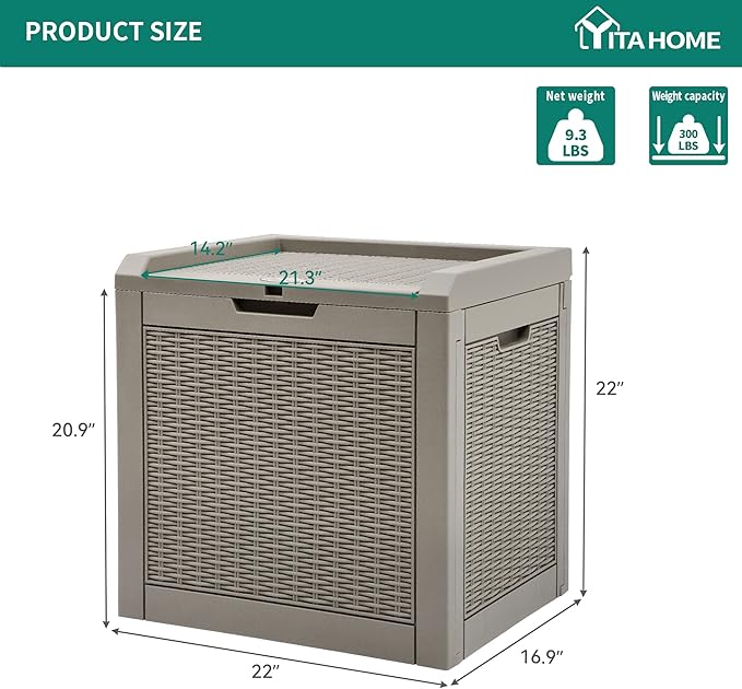 - PRODUCT DIMENSIONS- With a 32-gallon storage capacity and dimensions of 22.1''L x 17.1''W x 20.9''H, this outdoor storage box is the optimal choice for storing small items with easy accessibility