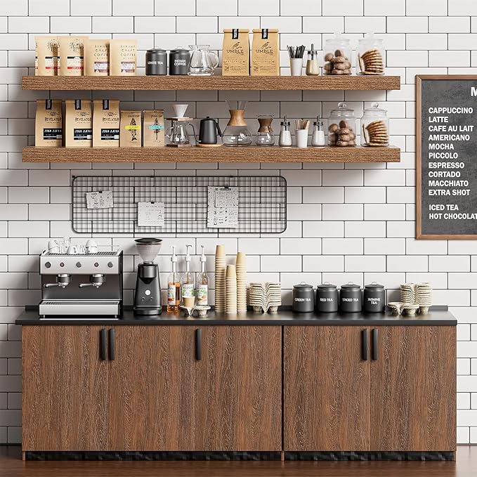 - 【Longer Design】Our pretty wall shelves are 48"W x 9.3"D x 1.5"H.Our walnut floating shelves is longer than traditional designs and can hold more items.The floating shelf optimize wall space,helping organize essentials without taking up floor space in your home.