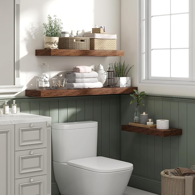 Heimlove 36 Inch Floating Shelves for Wall Set of 2,Rustic Brown Wall Shelves for Storage & Decor - Heavy Duty with Invisible Brackets,Perfect for Living Room,Bedroom,Home Office