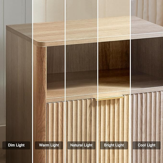 Fluted Nightstand, Natural Oak Bedside Table with Drawer and Storage, Wood End Table Mid Century Modern, Large Night Stand for Bedroom