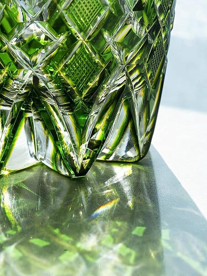 JEKE Edo style Hand Carved Drinking Glass Crystal Whisky Glass 340ml Tumbler For Whiskey Cocktail-Vodka-Beer Drinkingware Glasses In Gift Carton (Green)