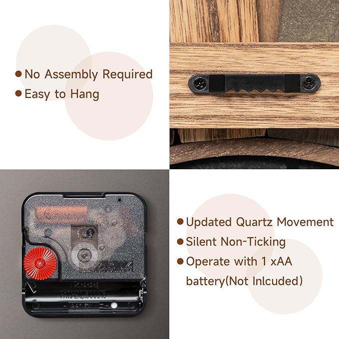 - Special Feature : Silent Clock, natural solid wood & no need assembly, wall decor