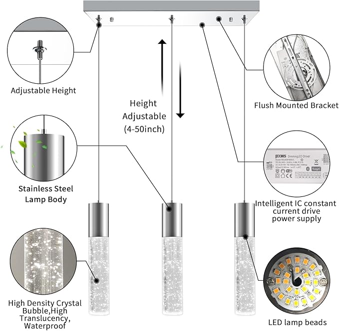 - 【Easy to install and service】 Adjust the hanging height (20"-50") with included chains to match vaulted ceilings or low-profile kitchens. UL-Wires safety guaranteed. OKELI LED pendant lights come with an accessories pack, for more details please check the Instruction manual. OKELI provides customers with service for 36-months if you have any questions about the product. Please make sure to let me know, and we will reply within 24 hours and provide you with satisfactory solutions.