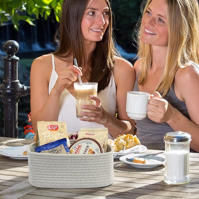 Small Woven Storage Baskets 13“X9”X5“ Decorative Rope Bins for Organizing Shelves, Closets, and Toys, Empty Gift Baskets, Cute Organizer Basket for Home and Office (grey, Large)