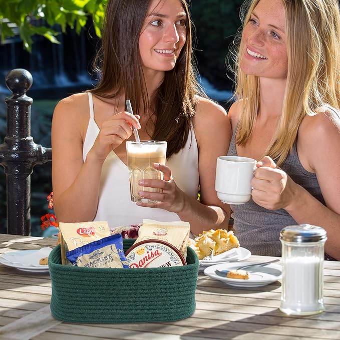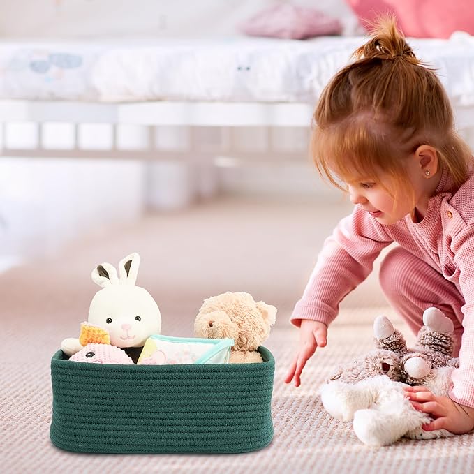 Small Woven Storage Baskets 12“X8”X5“ Decorative Rope Bins for Organizing Shelves, Closets, and Toys, Empty Gift Baskets, Cute Organizer Basket for Home and Office (dark green, regular)