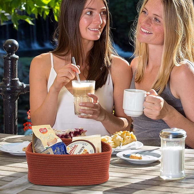 Small Woven Storage Baskets 12“X8”X5“ Decorative Rope Bins for Organizing Shelves, Closets, and Toys, Empty Gift Baskets, Cute Organizer Basket for Home and Office (rustic, regular)