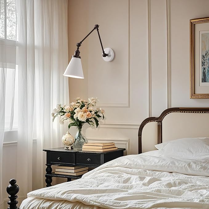 JONATHAN Y JYL7462C Rover 7" Classic Industrial Metal Adjustable Arm LED Wall Sconce, White/Oil Rubbed Bronze for Bedroom, Bathroom, Vanity