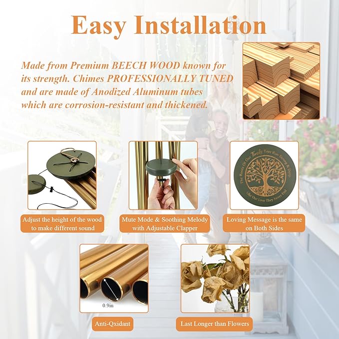 - Premium Sound Quality for Emotional Healing--Professionally tuned 5-metal tubes deliver deep, soothing tones that resonate like a calming melody. Thickened aluminum tubes and a dense wood striker ensure long-lasting, rich soundβideal for creating a serene atmosphere in gardens or yards.