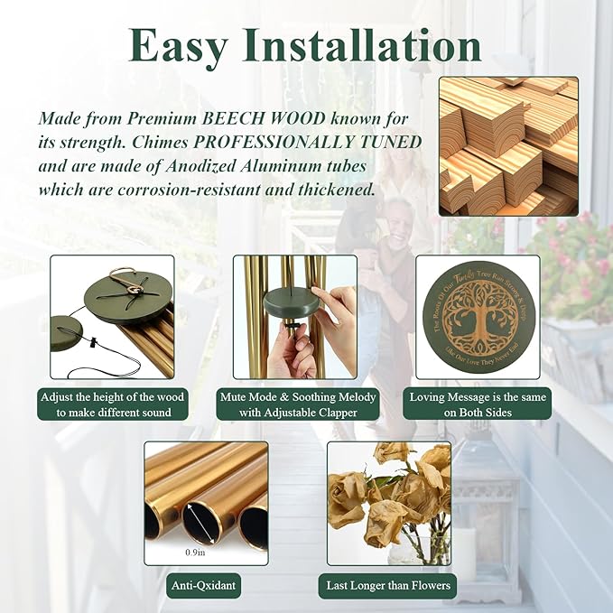 - Premium Sound Quality for Emotional Healing--Professionally tuned 5-metal tubes deliver deep, soothing tones that resonate like a calming melody. Thickened aluminum tubes and a dense wood striker ensure long-lasting, rich soundβideal for creating a serene atmosphere in gardens or yards.
