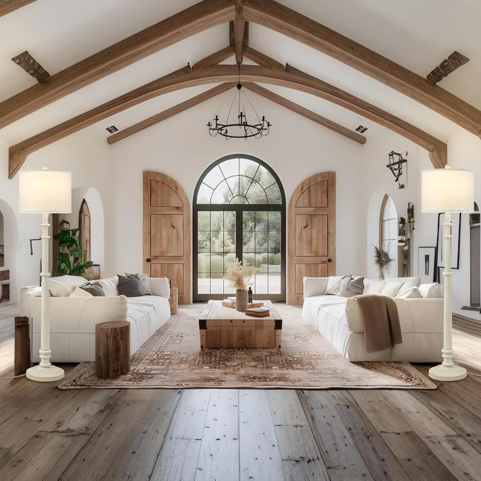 - ๐๐๐ซ๐ฌ๐๐ญ๐ข๐ฅ๐ ๐๐๐ฌ๐ข๐ง ๐ ๐ฅ๐จ๐จ๐ซ ๐๐๐ฆ๐ฉ - Discover versatility with our farmhouse floor lamp, expertly molded from resin for lasting beauty and reliability. Its classic design, complemented by a crisp white fabric drum shade, seamlessly integrates into any decor scheme from modern to traditional. Ideal for creating a cozy atmosphere in bedrooms, living areas, or reading corners. Simple assembly ensures hassle-free setup