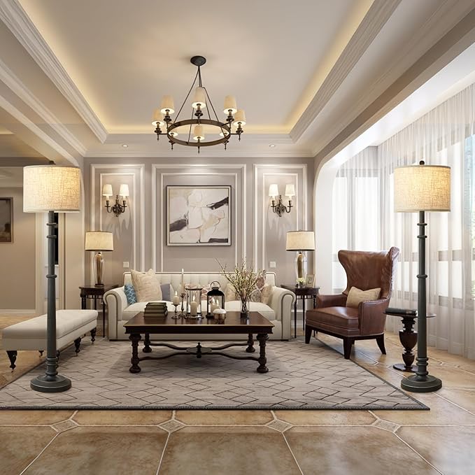 - ๐๐๐ซ๐ฌ๐๐ญ๐ข๐ฅ๐ ๐๐๐ฌ๐ข๐ง ๐ ๐ฅ๐จ๐จ๐ซ ๐๐๐ฆ๐ฉ - Discover versatility with our farmhouse floor lamp, expertly molded from resin for lasting beauty and reliability. Its classic design, complemented by a crisp white fabric drum shade, seamlessly integrates into any decor scheme from modern to traditional. Ideal for creating a cozy atmosphere in bedrooms, living areas, or reading corners. Simple assembly ensures hassle-free setup